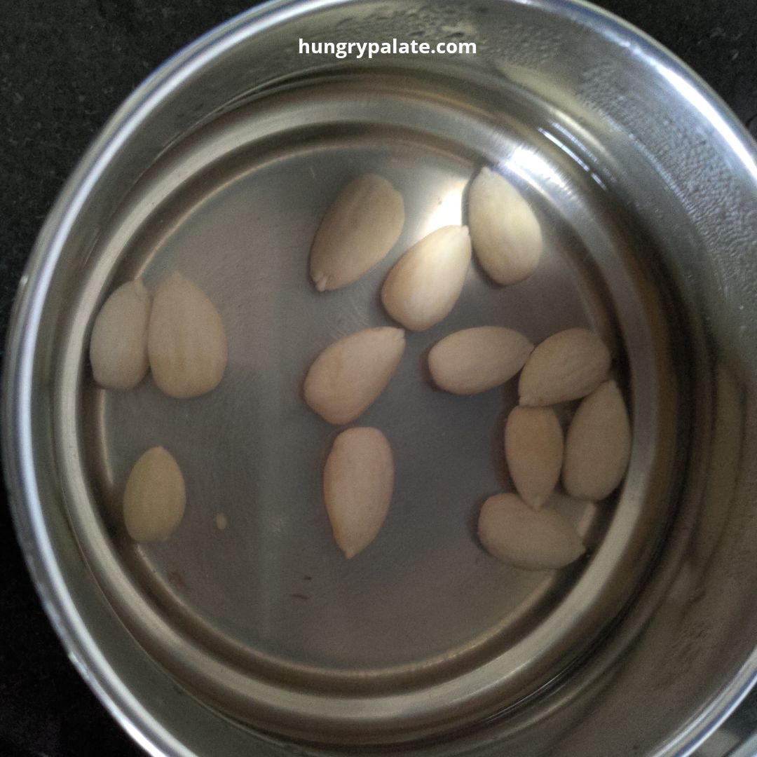 - Once the water is hot enough, pour it into the almonds and let it sit for a while. or soak almonds overnight in normal water.