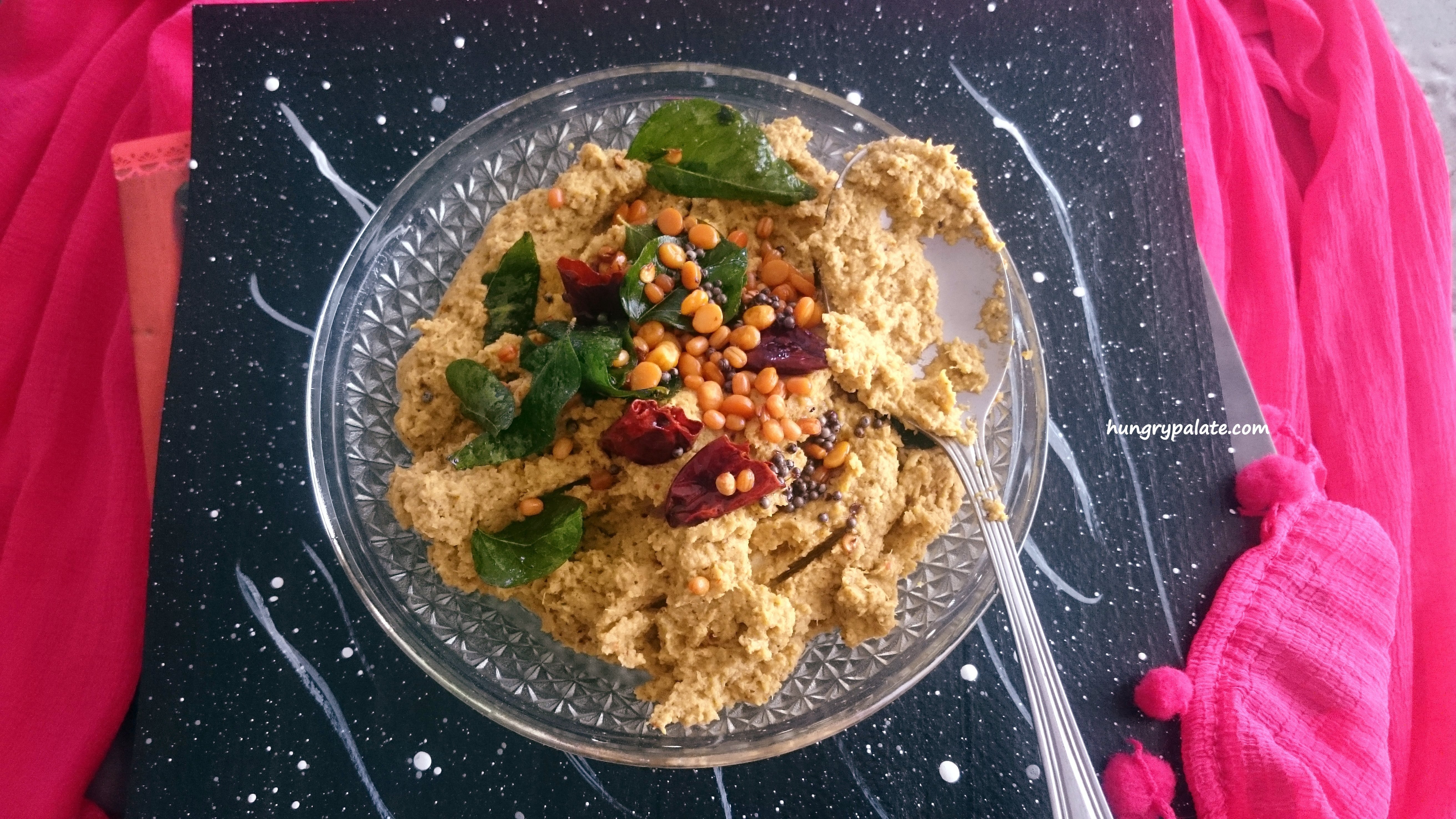 13. Dish out the chutney into a bowl and pour the tempering on it and mix well