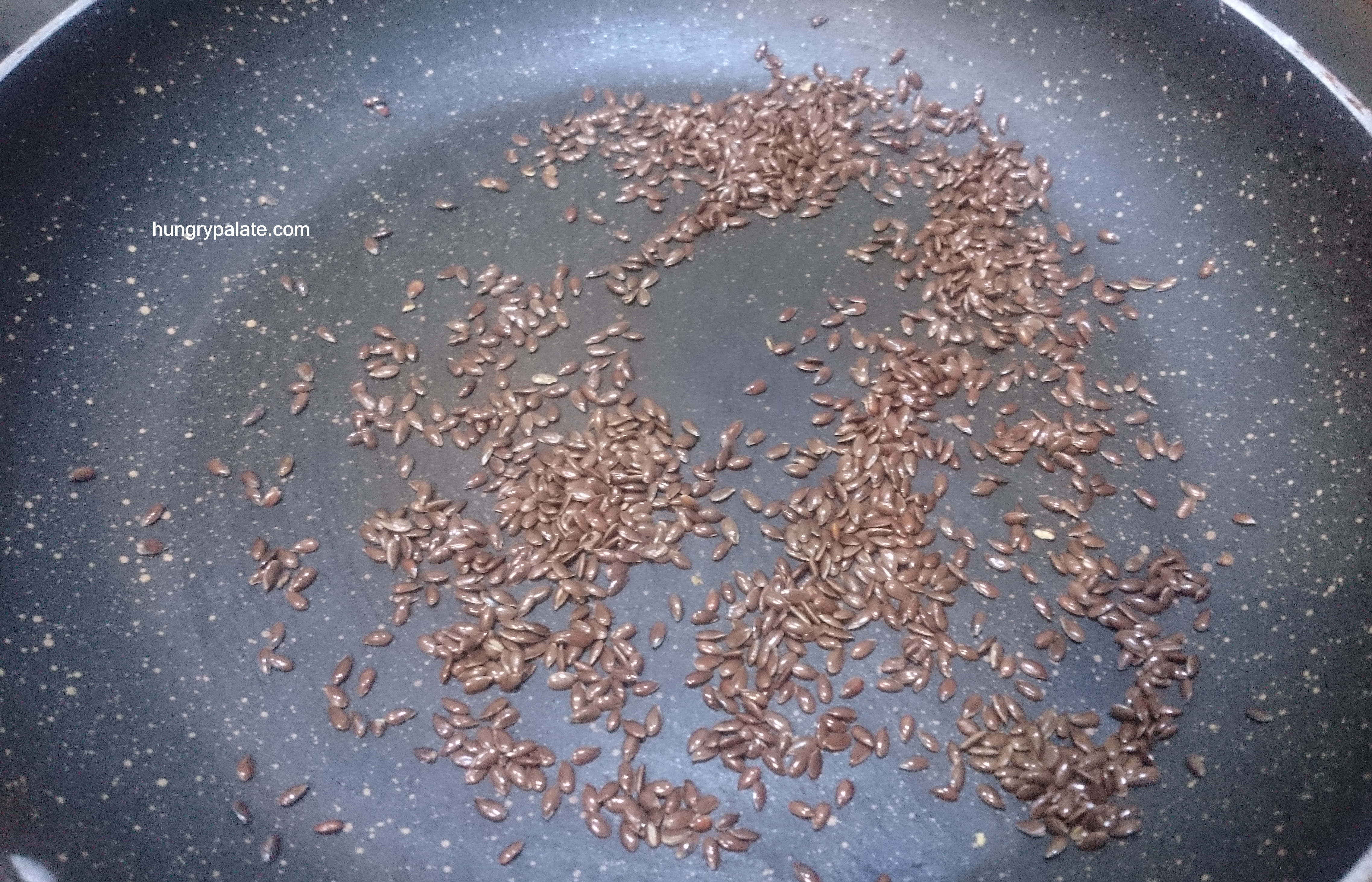 - Meanwhile, take a pan and dry roast flax seeds until they start changing the colour.