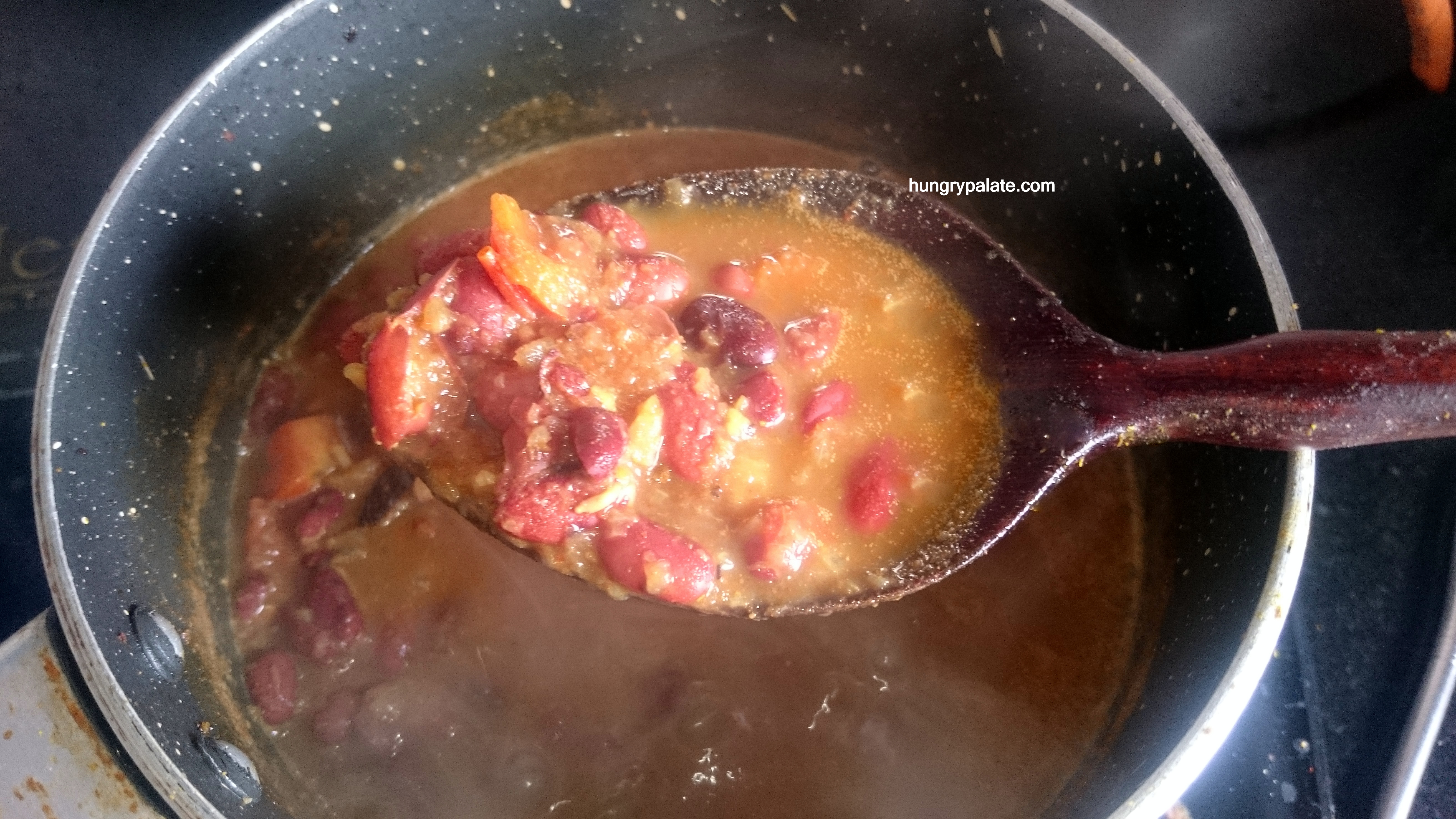 - Wait until the water comes to a boil then add in the 3/4th of the cooked Kidney Beans, mash the remaining and it to the mixture.