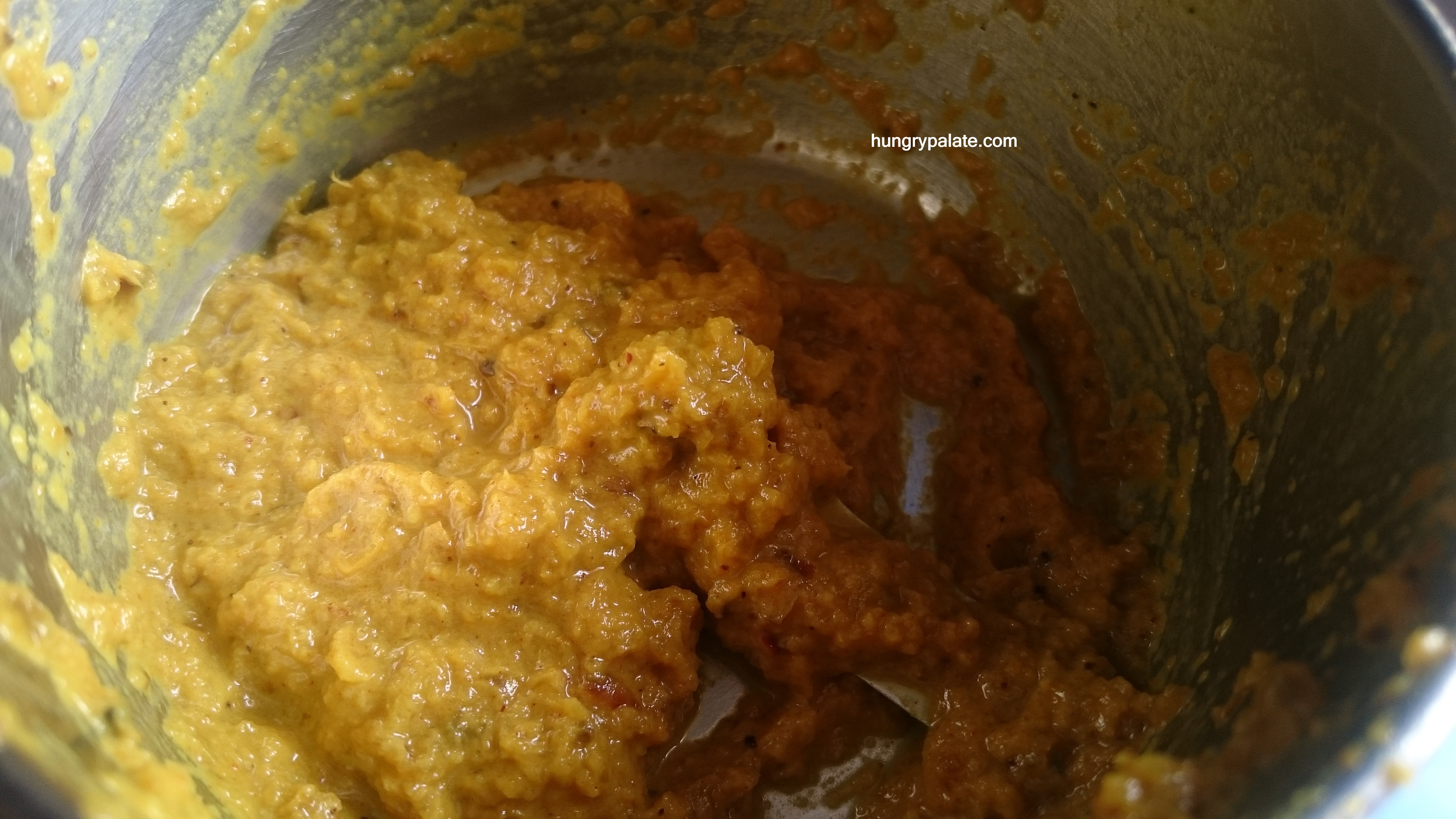- By now onion mixture must be cooled down, so, now put this in a mixer jar and make a coarse or fine paste.