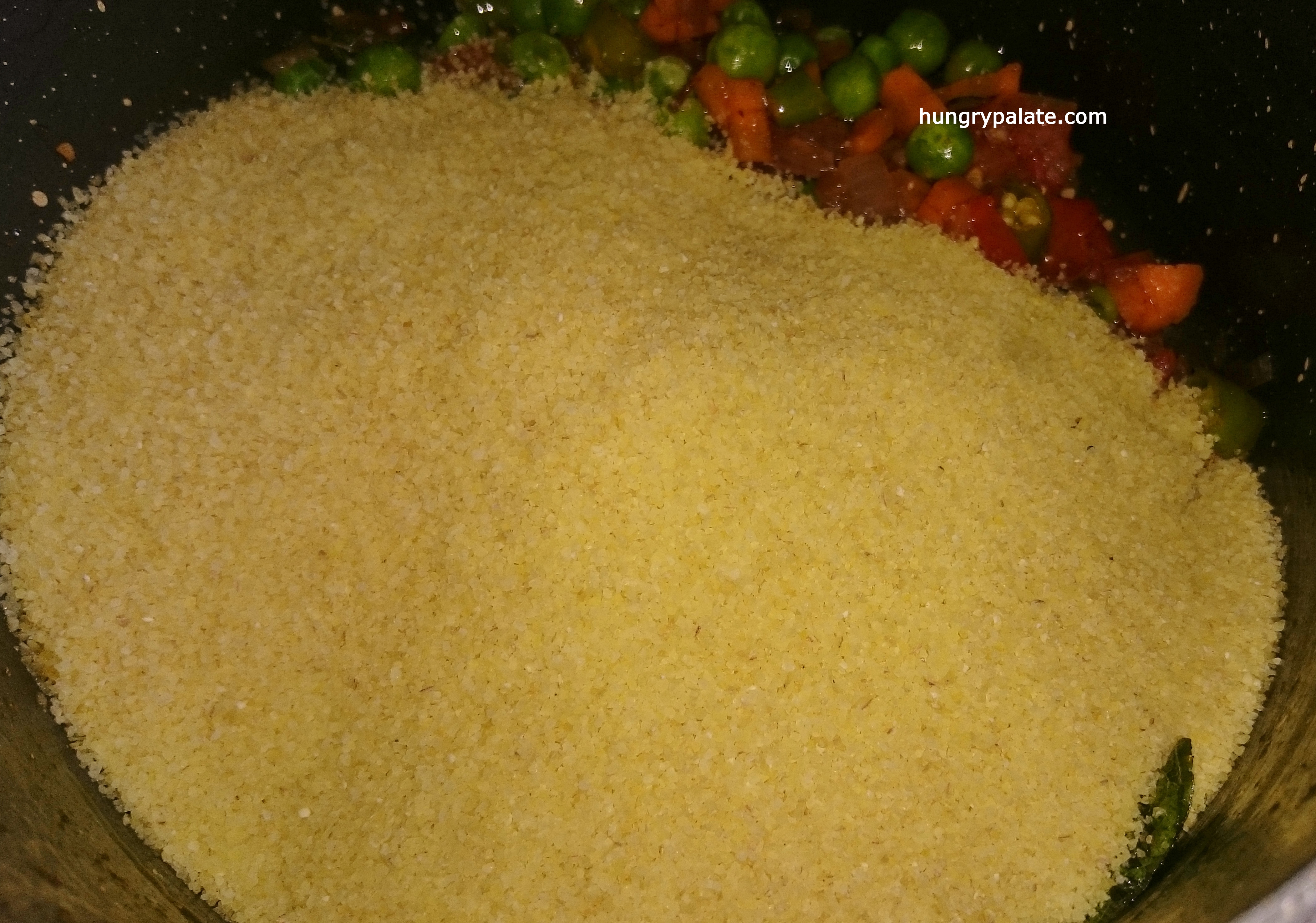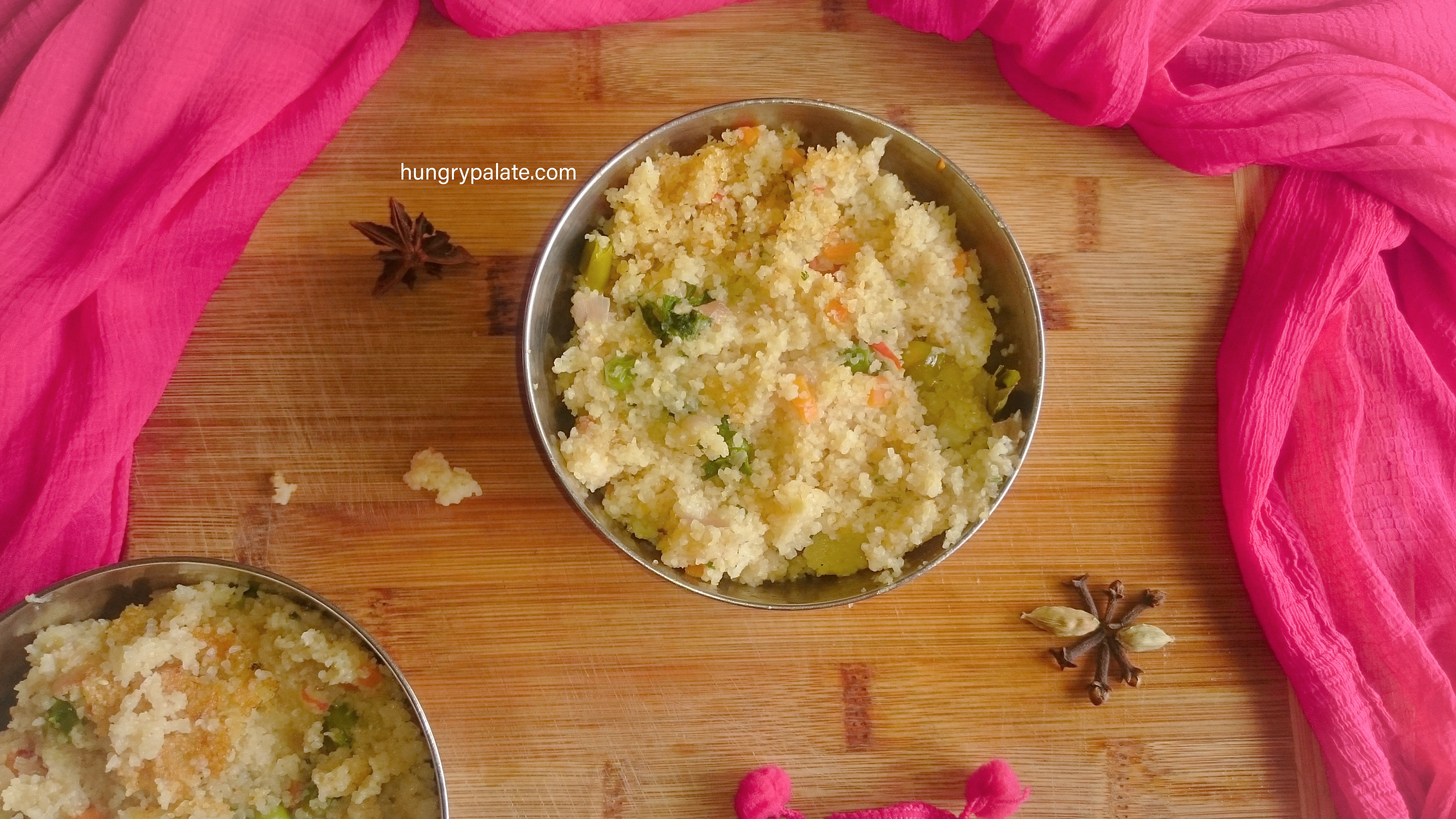 Here I used Bansi Rava for that healthier kick with loaded vegetables.